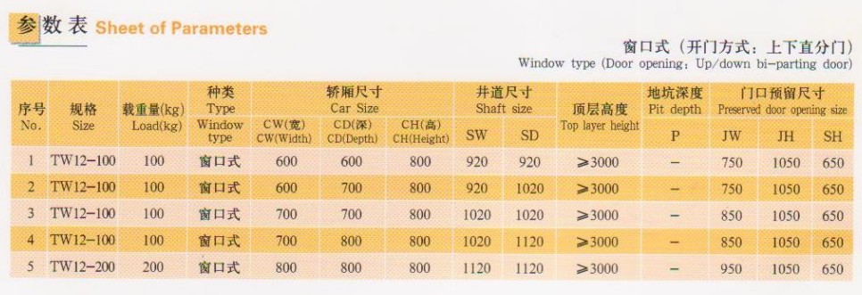 名稱:窗口式雜物電梯